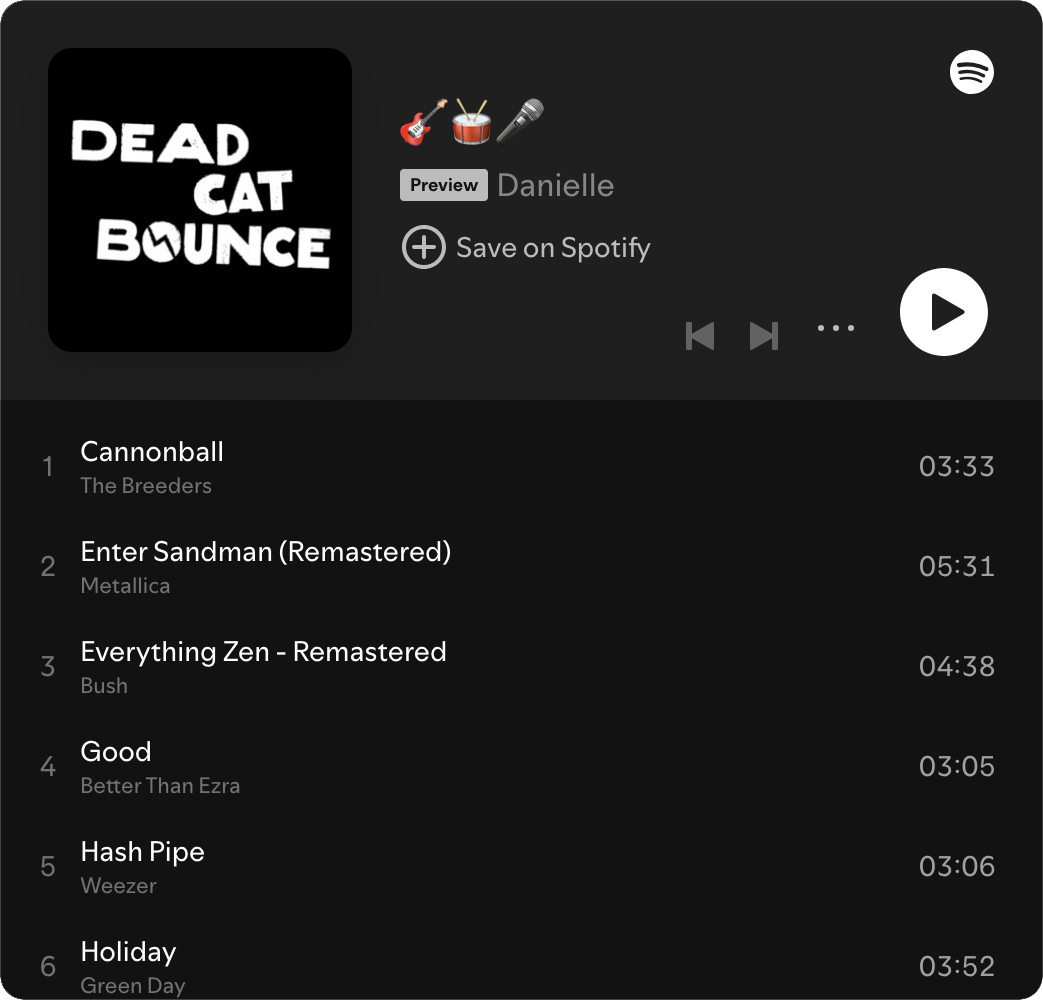 We are an East Bay primarily ‘90s cover band, which means we play grunge, alt-rock, and the pop anthems you pretend you don’t love.